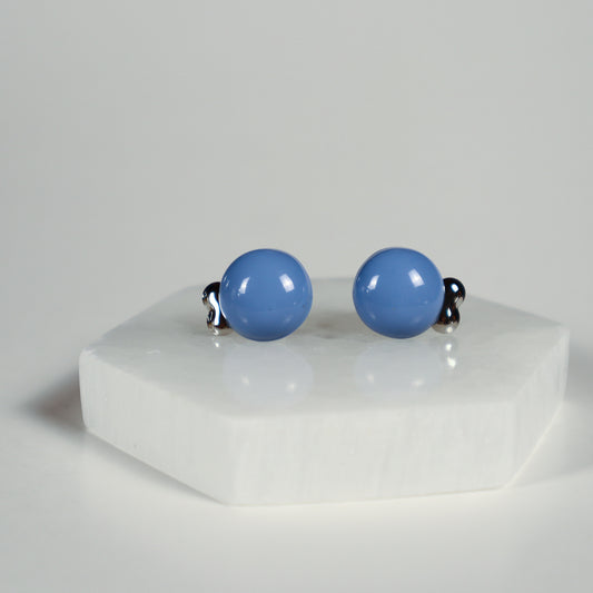 Mini Button Earrings - Baby Blue
