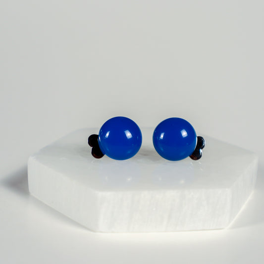Mini Button Earrings - Cobalt Blue