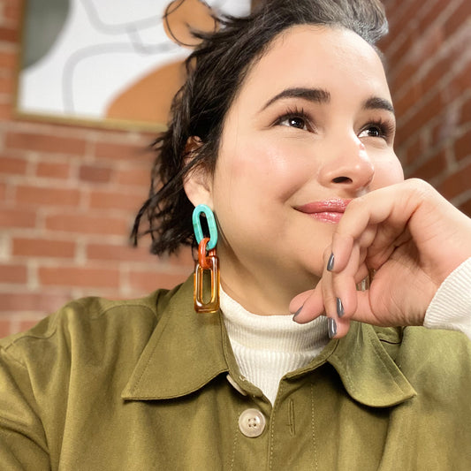 Geometric Statement Earrings - Teal, Red & Honey
